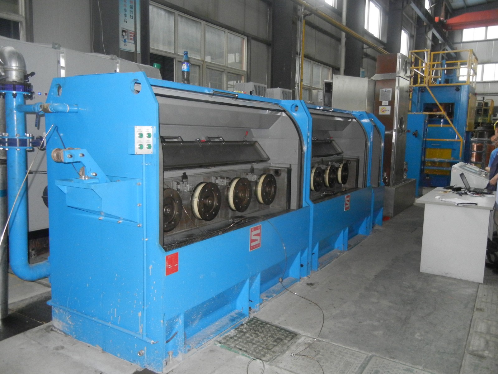 6. Notre dessiccateur intermédiaire haute vitesse fonctionne avec une grue de 15 tonnes (au moins), un générateur de vapeur, un compresseur d'air, un enfileur de fil, des matrices de tréfilage, un lubrifiant de tréfilage, une huile pour engrenages et un échangeur de chaleur.