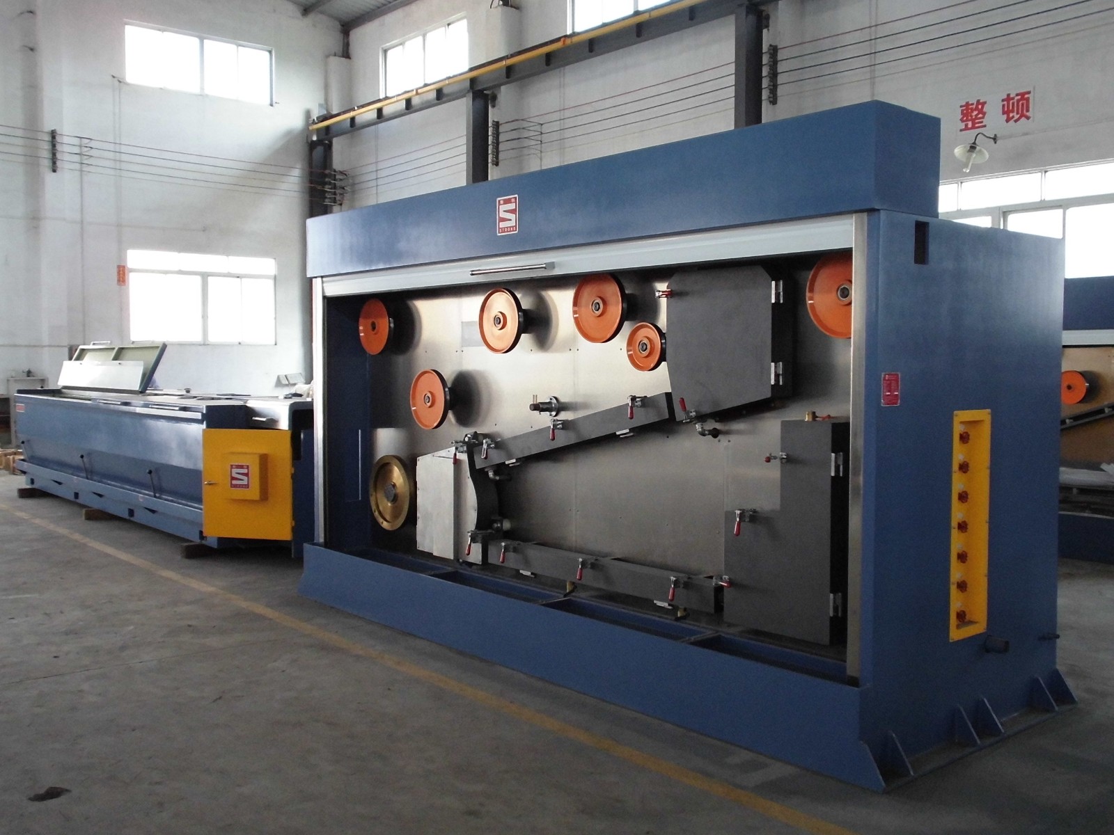 This high speed rod breakdown machine is suitable for drawing Φ8mm copper and copper alloy rods, and Φ9.5mm aluminum and aluminum alloy rods into wires. This rod breakdown equipment consists of wire pay-offs, wire drawing machine and electric control system.