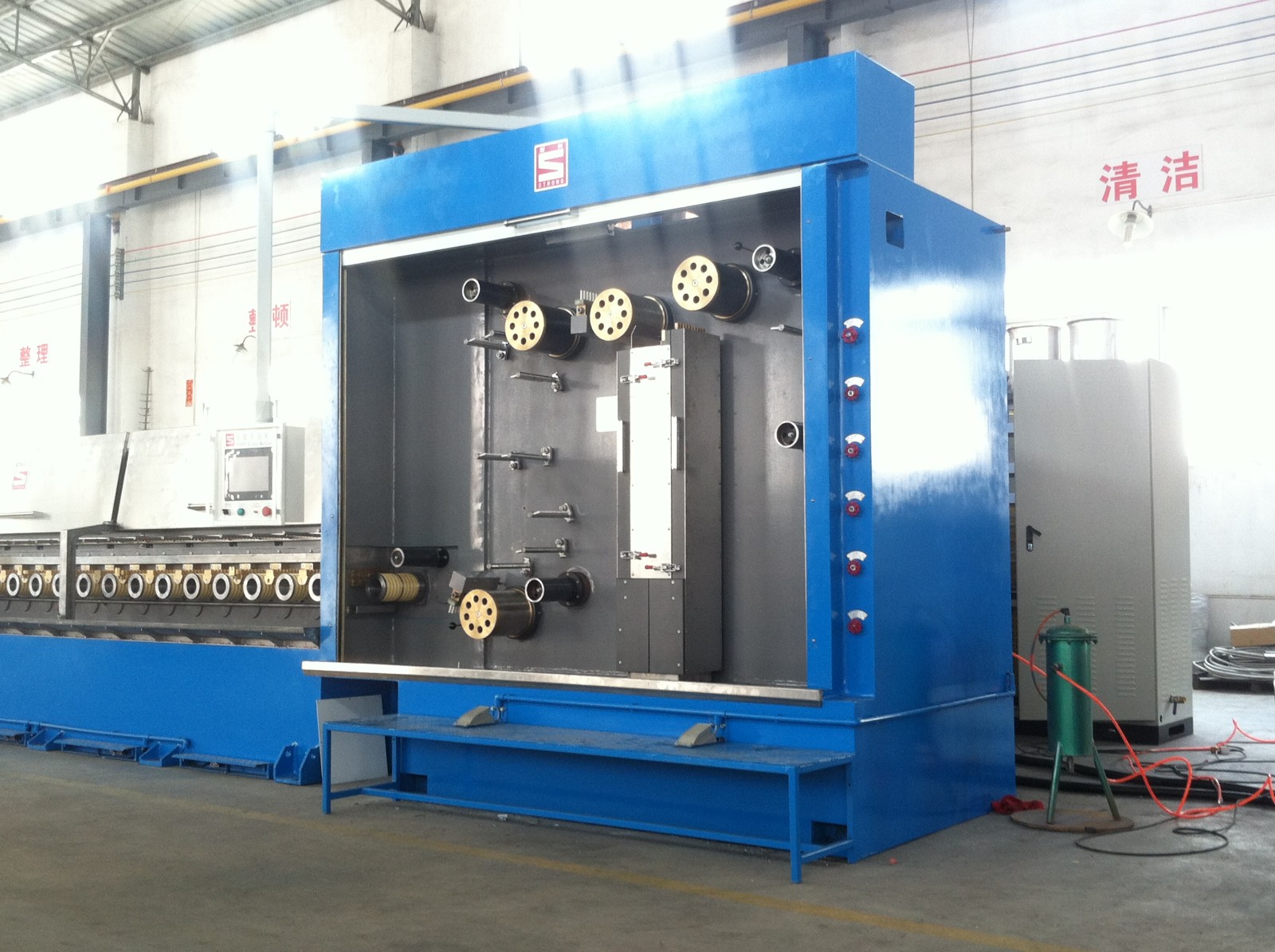 6. Notre recuit à résistance en ligne fonctionne avec une grue de 10 tonnes (au moins), un générateur de vapeur, un compresseur d'air, un enfileur de fil, des matrices de tréfilage, un lubrifiant de tréfilage, une huile pour engrenages et un échangeur de chaleur.