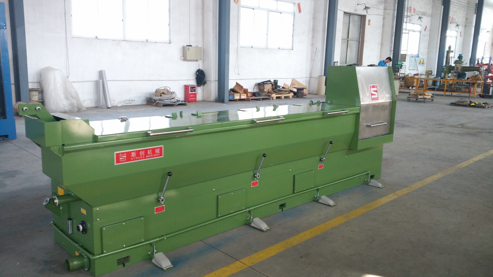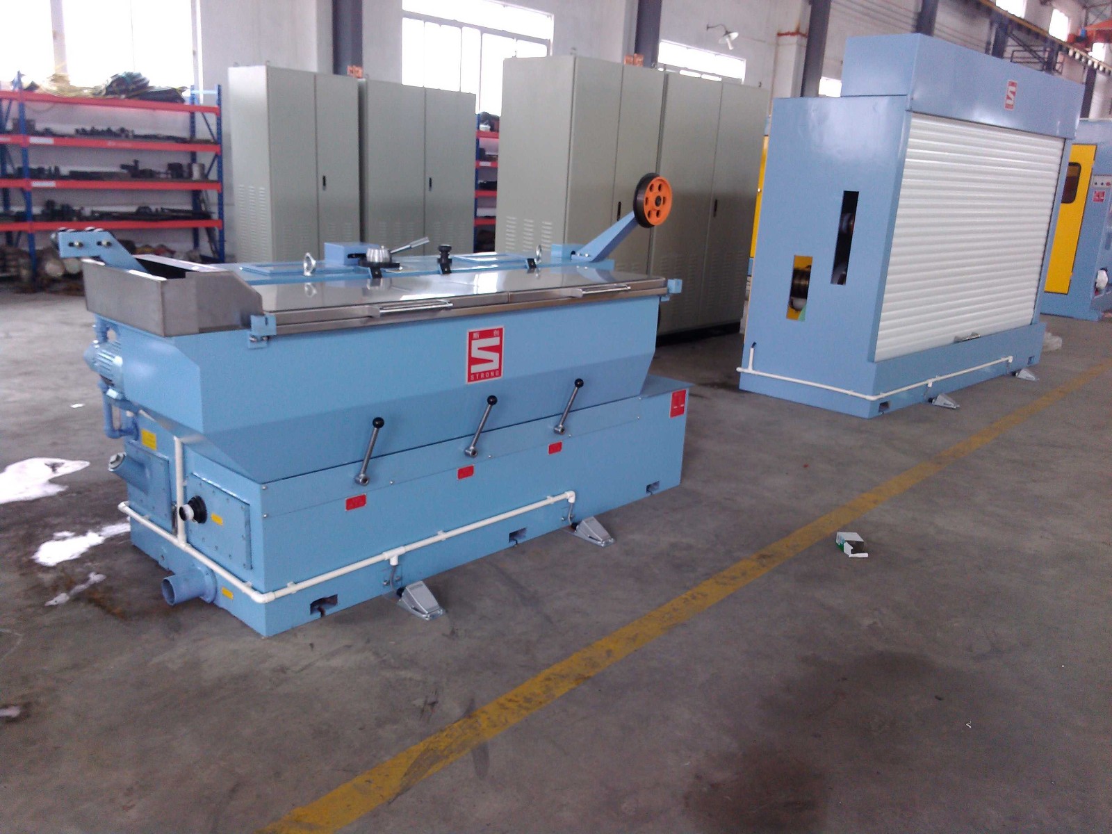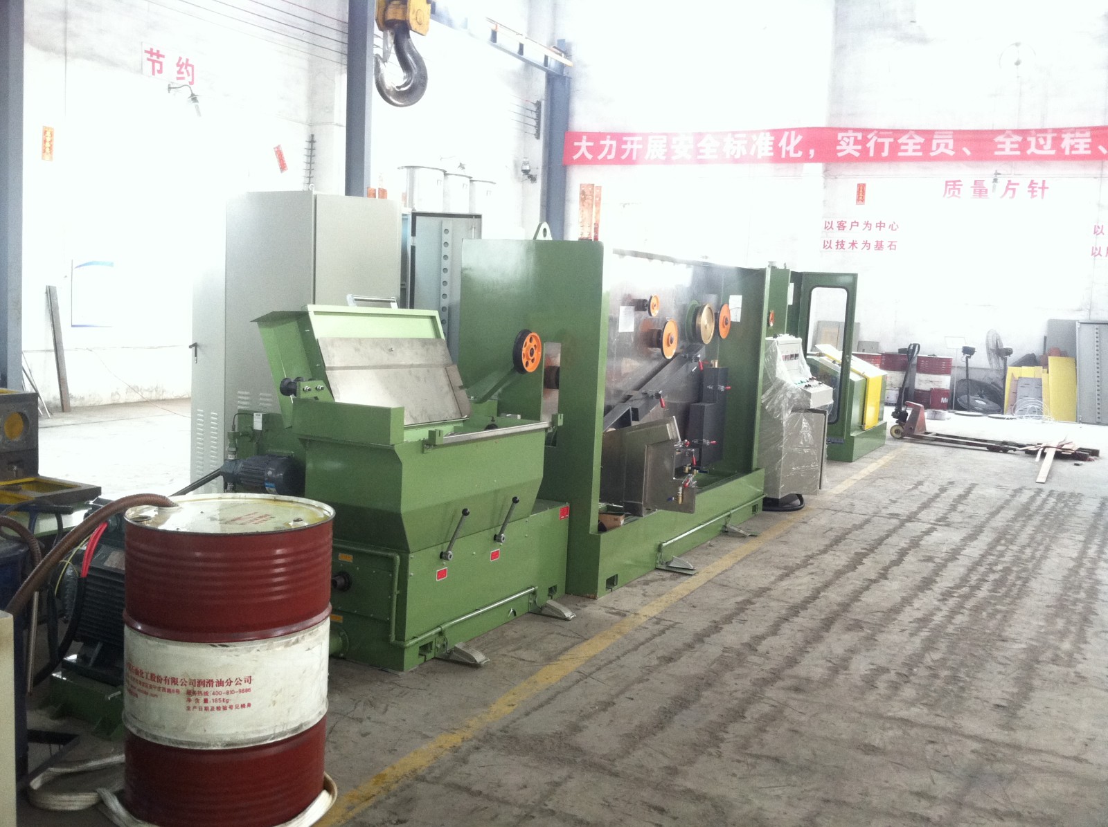 6. Nossa máquina de desenho intermediário de alta velocidade funciona em conjunto com 10 toneladas (pelo menos) guindaste, gerador de vapor, compressor de ar, rosca de arame, matrizes de arame, lubrificante de desenho de arame, óleo de engrenagem e permutador de calor.