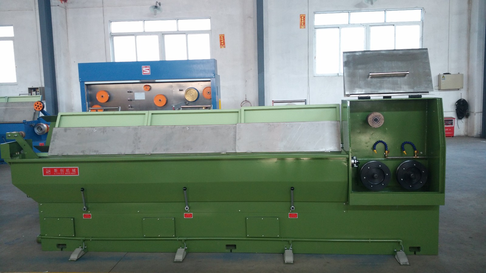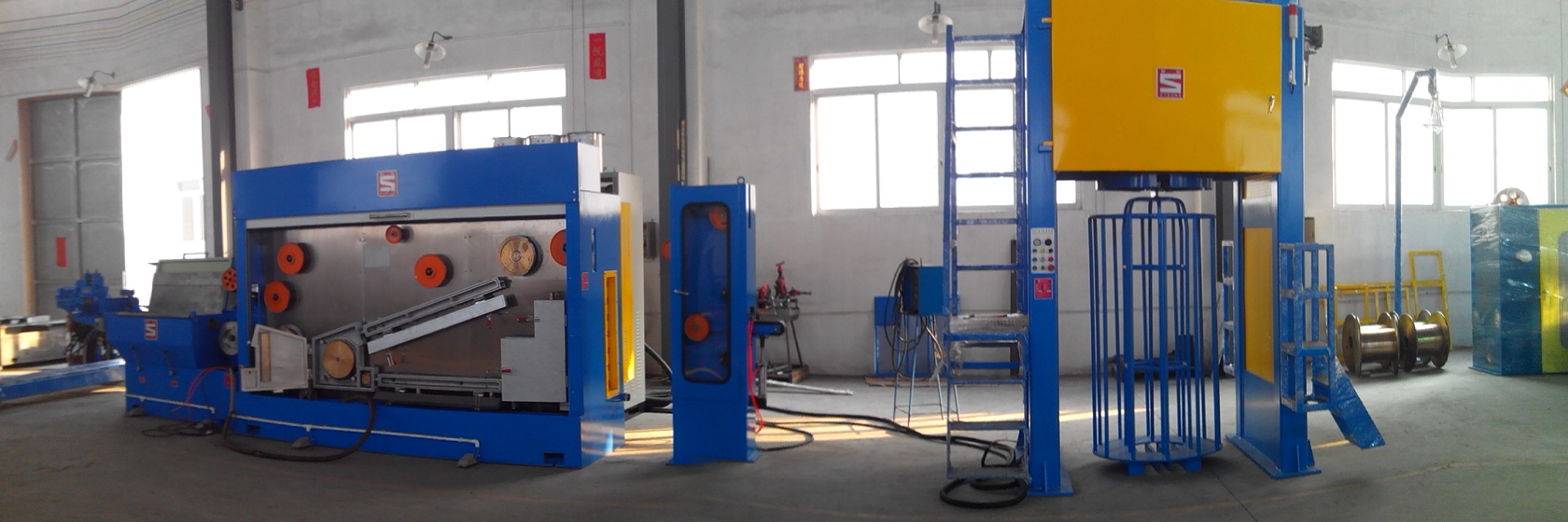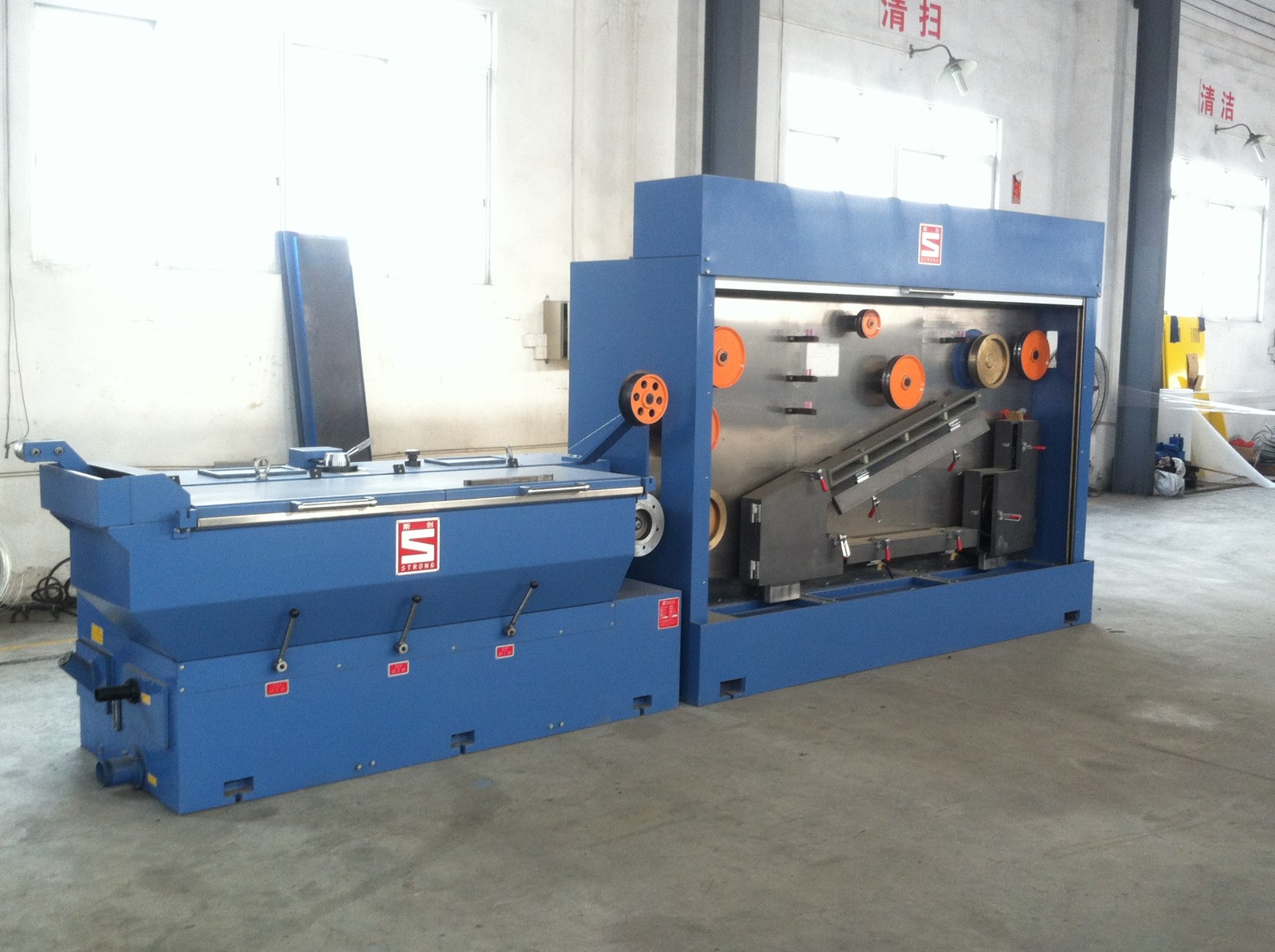 6. Nossa máquina de desenho intermediário de alta velocidade funciona em conjunto com 10 toneladas (pelo menos) guindaste, gerador de vapor, compressor de ar, rosca de arame, matrizes de arame, lubrificante de desenho de arame, óleo de engrenagem e permutador de calor.