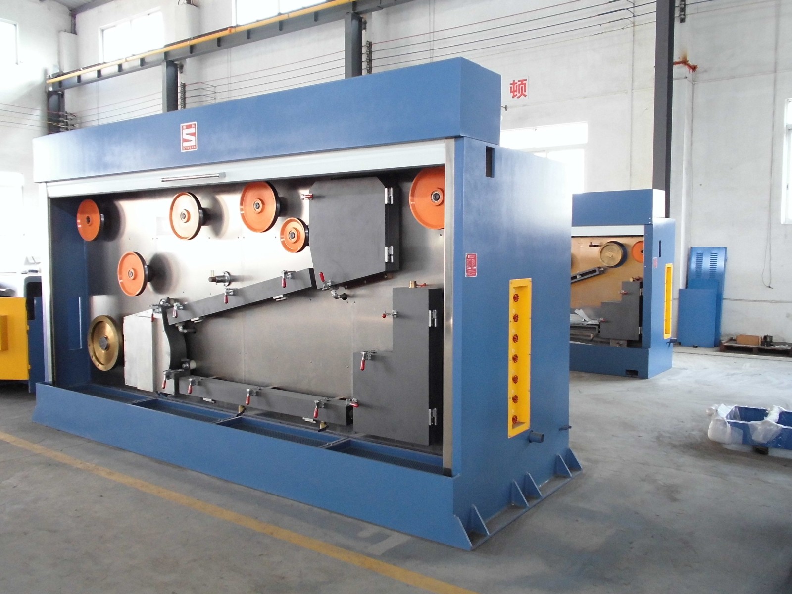 Máquina de desenho intermediário de alta velocidade simples / dupla fioEsta máquina de desenho intermediário de alta velocidade é adequada para desenhar Φ3.0mm de cobre e ligas de cobre e Φ4.2mm de alumínio e ligas de alumínio em hastes. Nossa máquina intermediária de arameamento consiste em compensações de fio, máquina de desenho de fio e sistema de controle elétrico....